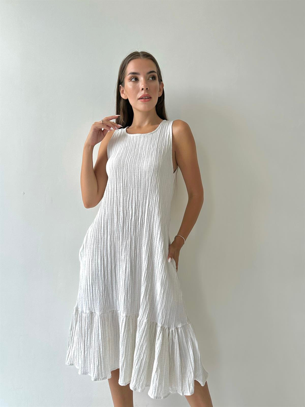 Kolsuz Volanlı Loren Elbise Taş (STK2932)